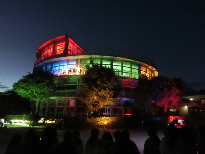 3月16日(月)、卒業する6年生へ向けて、PTAの有志による円筒校舎ライトアップイベントが行われました。7~8年前にも円筒校舎がライトアップされた写真を見た保護者が、コロナ禍で何もできなかったことが多かったこの学年に向けて、思い出に残るイベントをしたいという思いから企画しました。